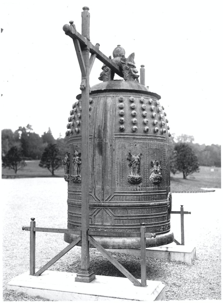 1867 Chute du régime féodal, le Temple Honsen-ji est incendié et la cloche, seule rescapée du sinistre, disparaît. Elle a peut-être été présentée lors des Expositions universelles de Paris et de Vienne.